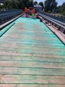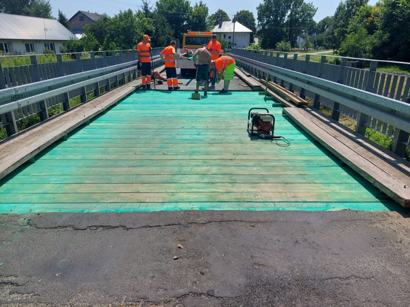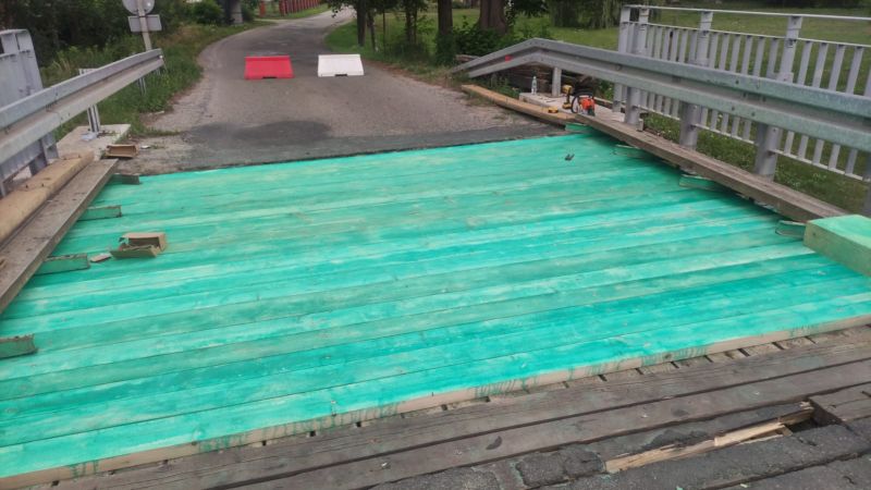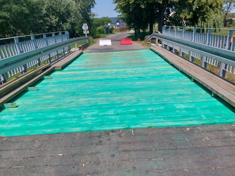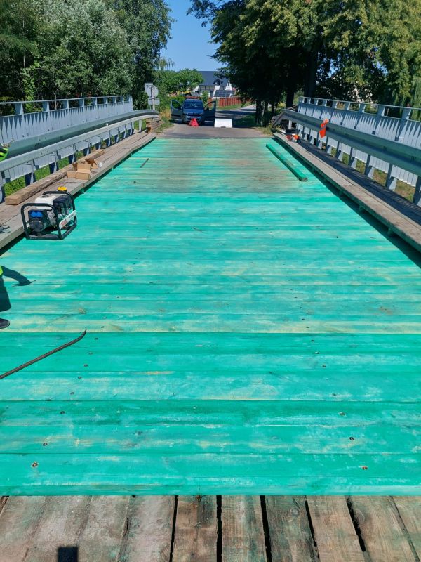 Trwają prace remontowe na moście w Charytanach . Obecnie pracownicy Słuzby Liniowej PZD dokonali wymiany dyliny górnej mostu.