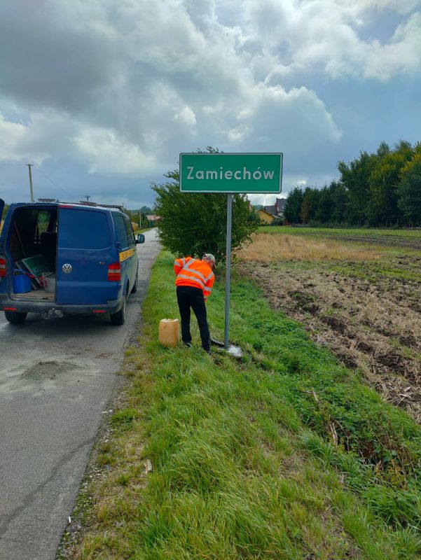 Dodatkowo na drogach powiatowych Nr 1785R Boratyn - Zamiechów oraz 1792R Łowce - Zamiechów na terenie gminy Chłopice zostały uzupełnione tablice miejscowści E17a