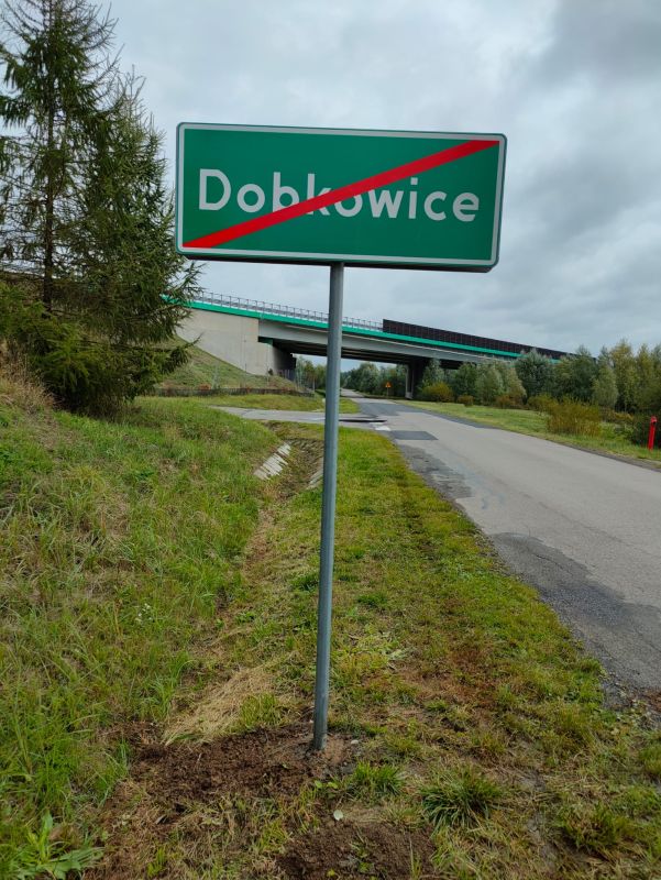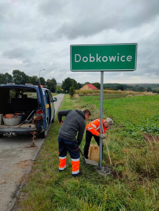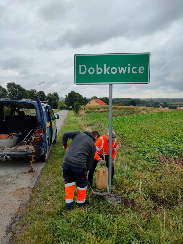 W dniu 22.09.2022 r. pracownicy PZD kontynuują uzupełnianie zielonych tablic miejscowości E-17a