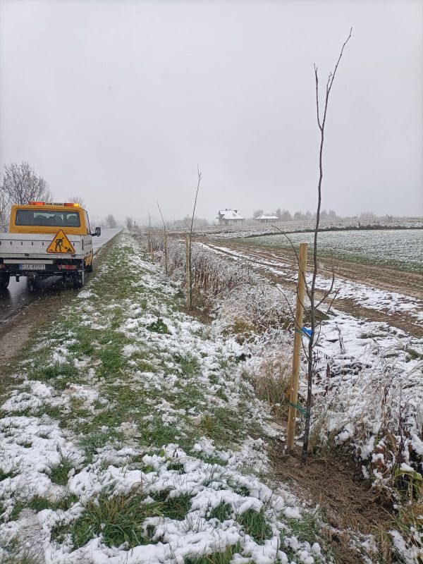 Pracownicy Służby Liniowej Powiatowego Zarządu Dróg w Jarosławiu, realizują prace polegające na uzupełnieniu drzewostanu w ciągu dróg i ulic powiatowych.