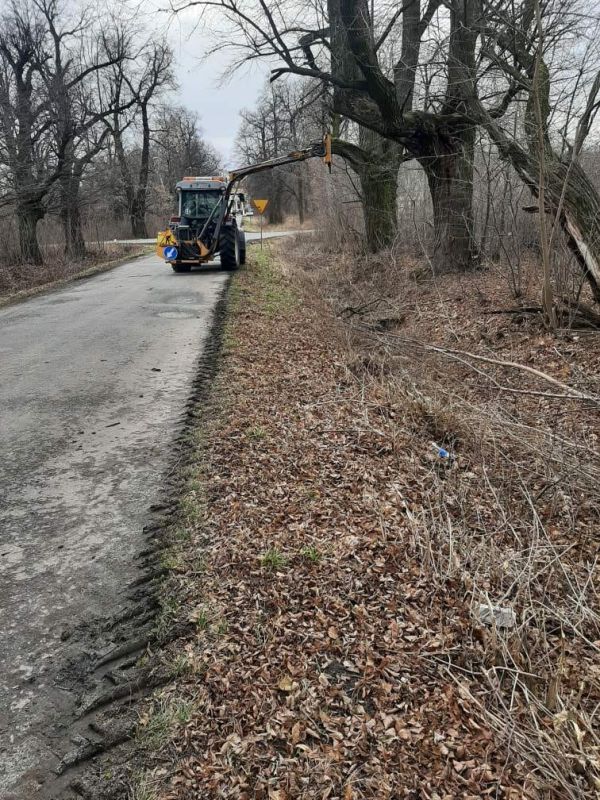 W dniu dzisiejszym pracownicy Służby Liniowej PZD w Jarosławiu kontynuują prace związane z oczyszczaniem pasa drogowego ( wycinka krzaków i podcięcie drzew) przy drogach powiatowych Nr 1719R Jarosław- Wietlin - Łazy oraz drogi Nr 1717R Bobrówka - Wysock.